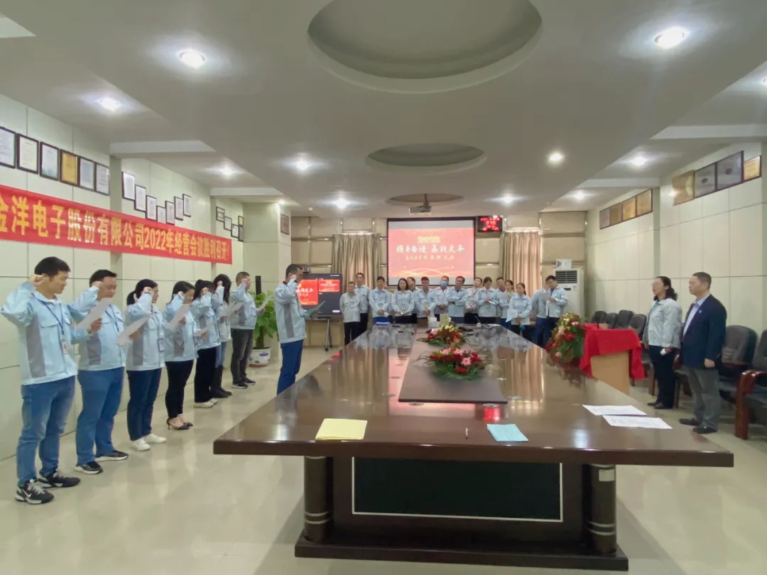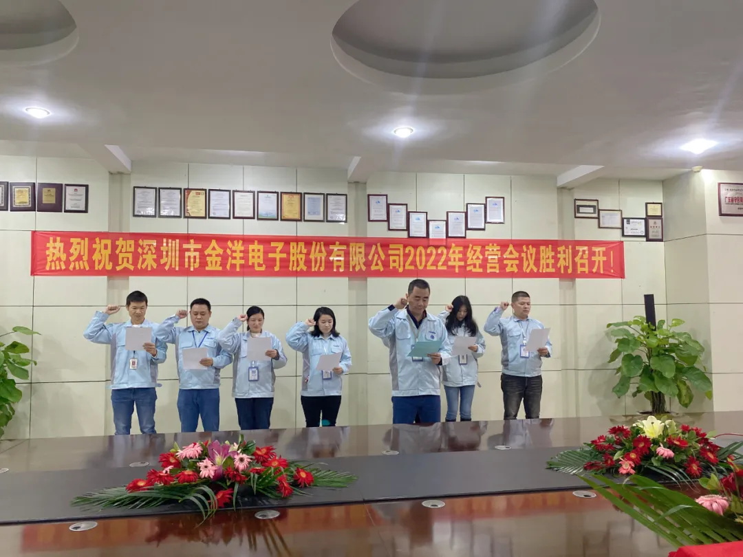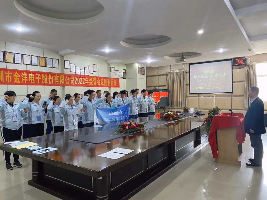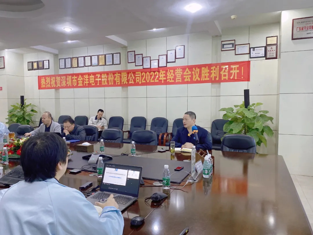 2022年1月7日-8日,深圳市金洋電子股份有限公司2022年經(jīng)營會議與誓師大會勝利召開,大會伊始,集團(tuán)董事長陳董發(fā)表講話,宣布會議正式召開。