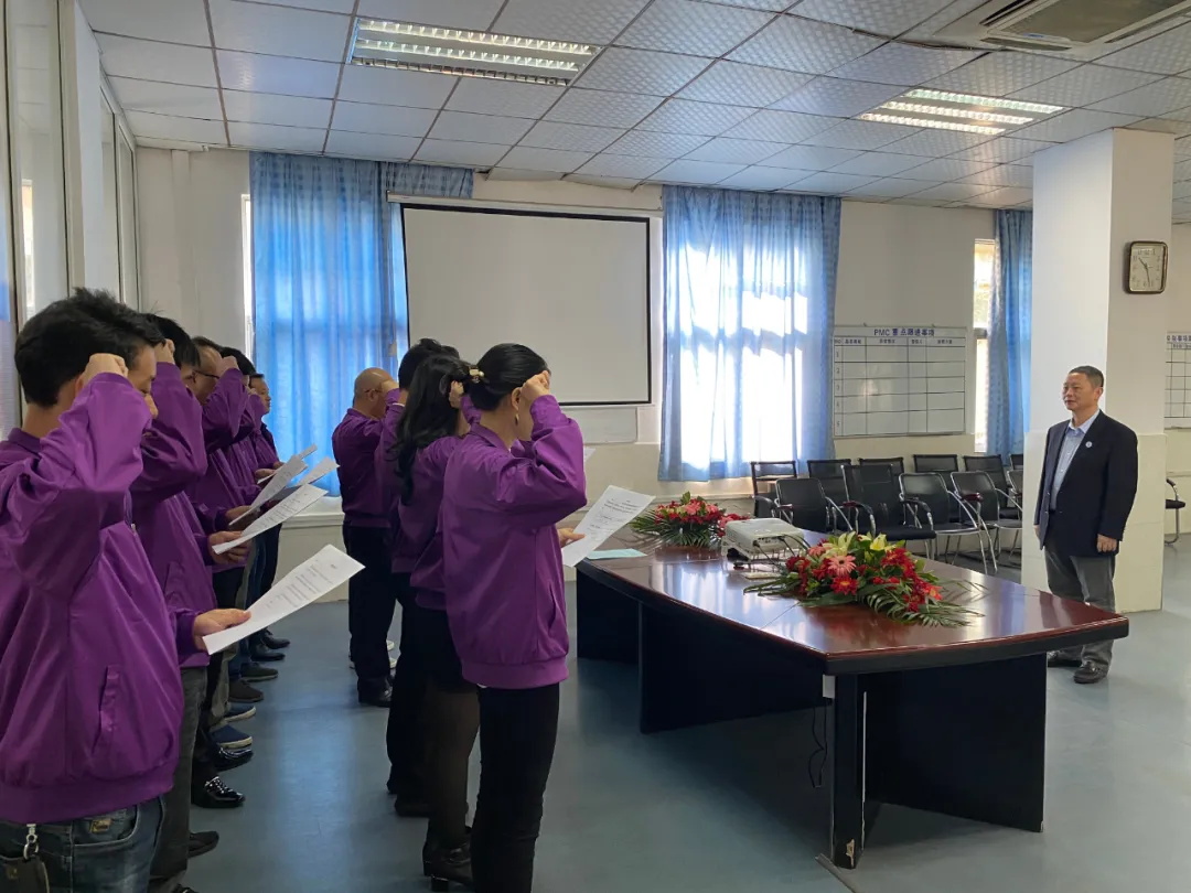 公司廠務(wù)向陳董,楊董副總就廠務(wù)目標(biāo)宣誓。